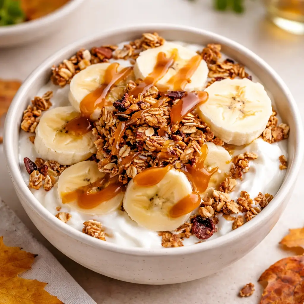 Salted Caramel Banana Yogurt Bowl is the absolute answer to those chaotic weekday mornings when you want to eat something