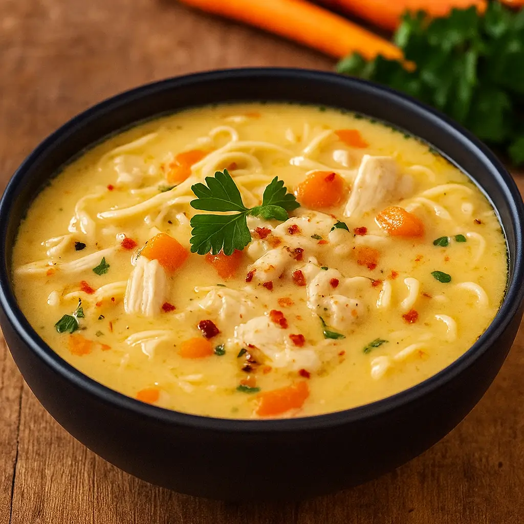 A rich and comforting take on the classic, this creamy chicken noodle soup blends tender chicken, hearty vegetables, and soft noodles in a velvety broth—perfect for chilly days and cozy nights.