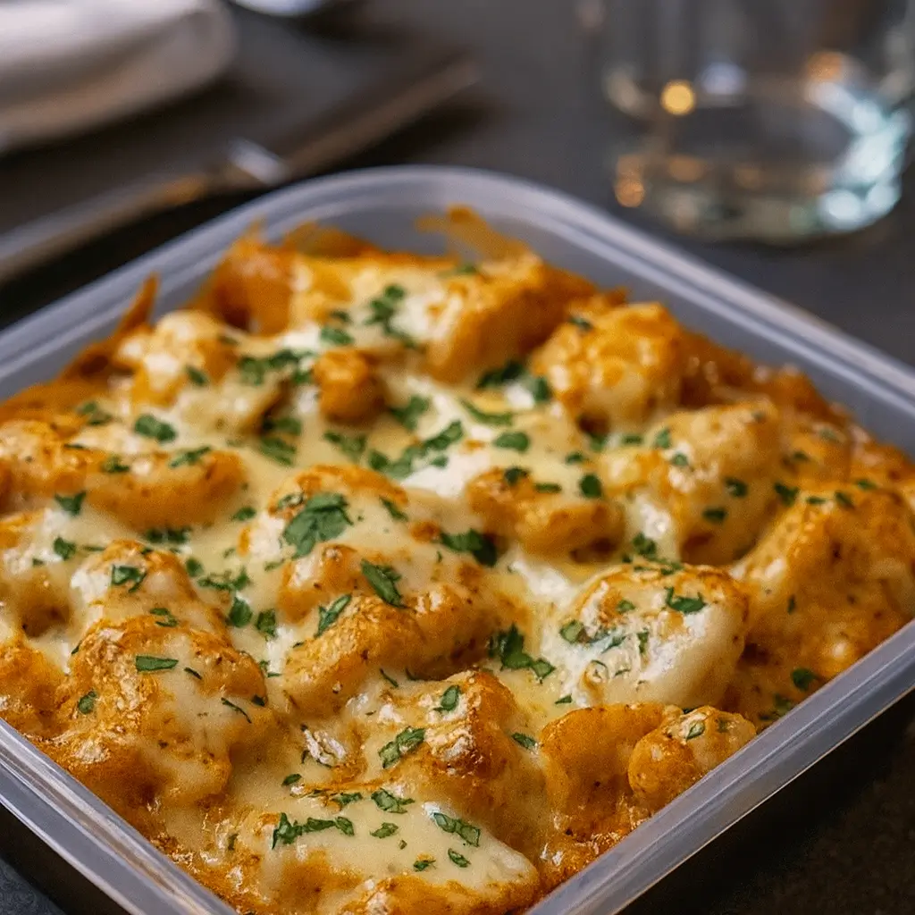 If you’ve ever thought “healthy” meant “boring,” this recipe will prove you wrong. First, it’s packed with 40+ grams of protein per serving—great for muscle recovery, energy, or just staying full longer. Second, the creamy garlic and cheesy goodness make it feel like a restaurant-quality meal you can whip up in under an hour. Third, it’s a total crowd-pleaser—kids love the cheesy potatoes, adults love the flavor depth, and everyone appreciates a one-pan cleanup. Plus, it’s easily customizable: add broccoli for a veggie boost or swap mozzarella for pepper jack if you like a little kick. For another comforting protein-packed option, try High-Protein Creamy Cajun Chicken next—it’s another fan favorite.