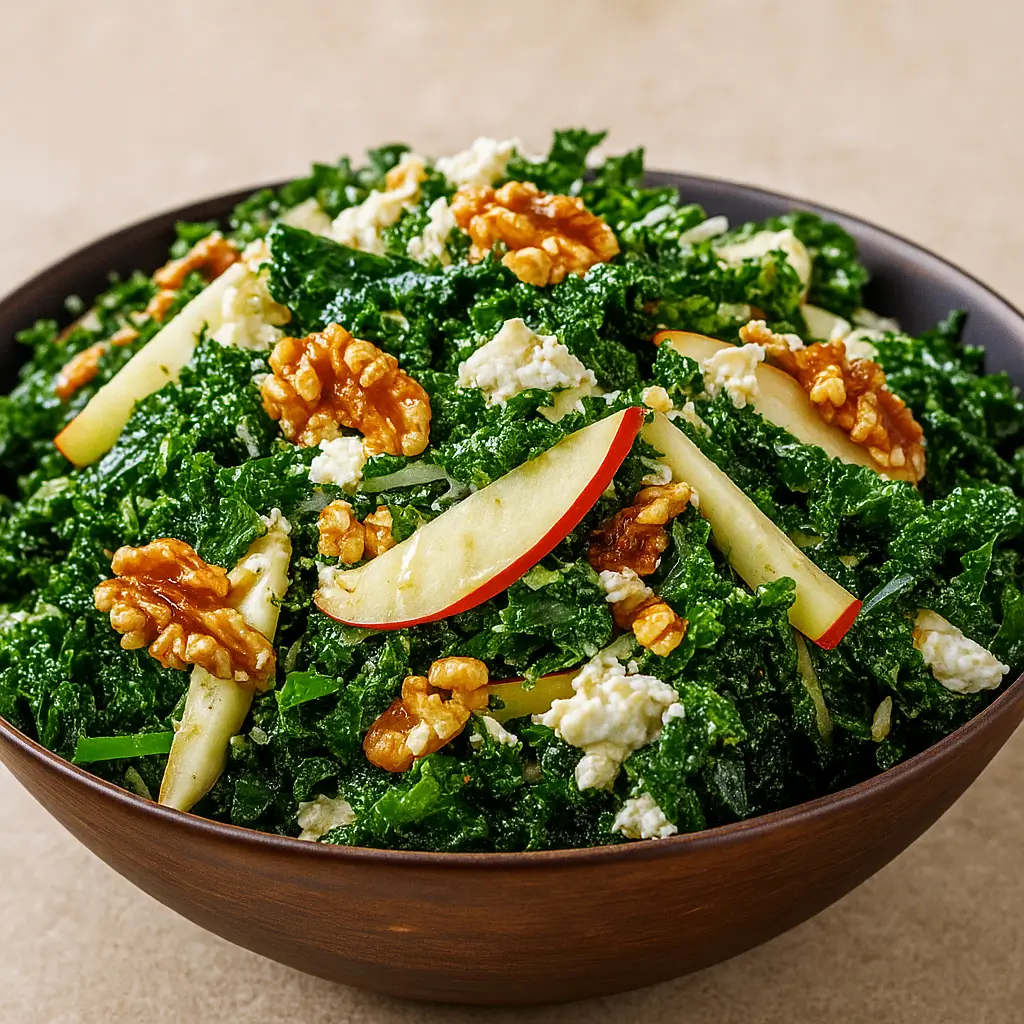 A refreshing and nutritious salad that combines the earthy flavor of kale with the crisp sweetness of apples. This dish is light, vibrant, and perfect as a side or a main salad for a healthy meal.