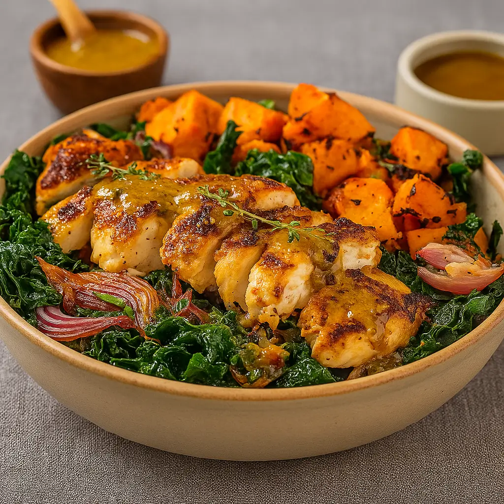 Maple Dijon Chicken and Roasted Sweet Potato Bowls – Easy, Flavor-Packed Dinner
