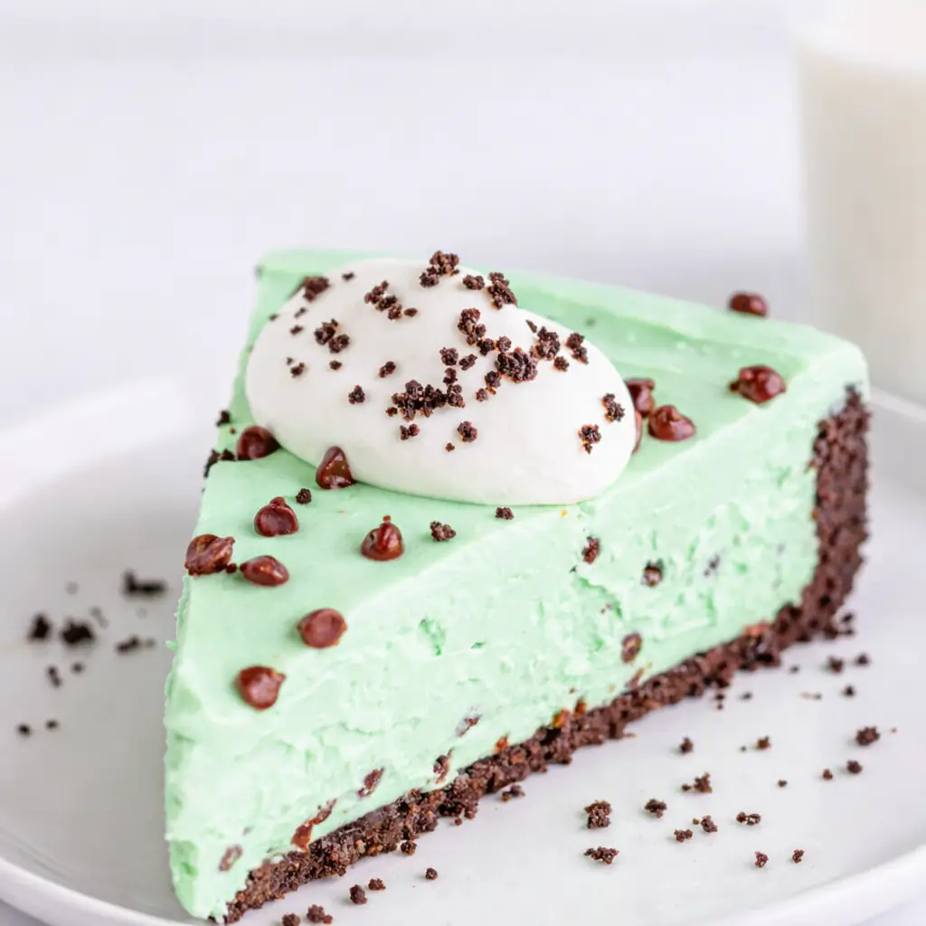 It’s nostalgic, refreshing, and crowd-pleasing. Third, the presentation is stunning—mint-green filling speckled with chocolate chips in a glossy Oreo crust—it’s Instagram-worthy without any food styling required. Plus, it’s super customizable: skip the food coloring for a more natural look or top it with whipped cream and crushed Andes mints for a restaurant-style finish. Whether you’re making it for a family dinner, potluck, or St. Patrick’s Day (try pairing it with our Chocolate Shamrock Pies), it’s guaranteed to impress.