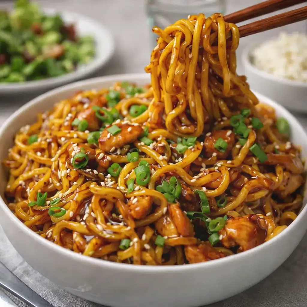 The recipe takes cues from classic Chinese and Japanese flavors, mixing umami-rich soy sauce, a touch of sweetness from honey, and the bold kick of fresh garlic and ginger. The result? A balanced, flavorful noodle dish that satisfies both your cravings and your conscience. And because it’s so adaptable, you can make it with chicken breast for a lighter meal or chicken thighs for extra tenderness.