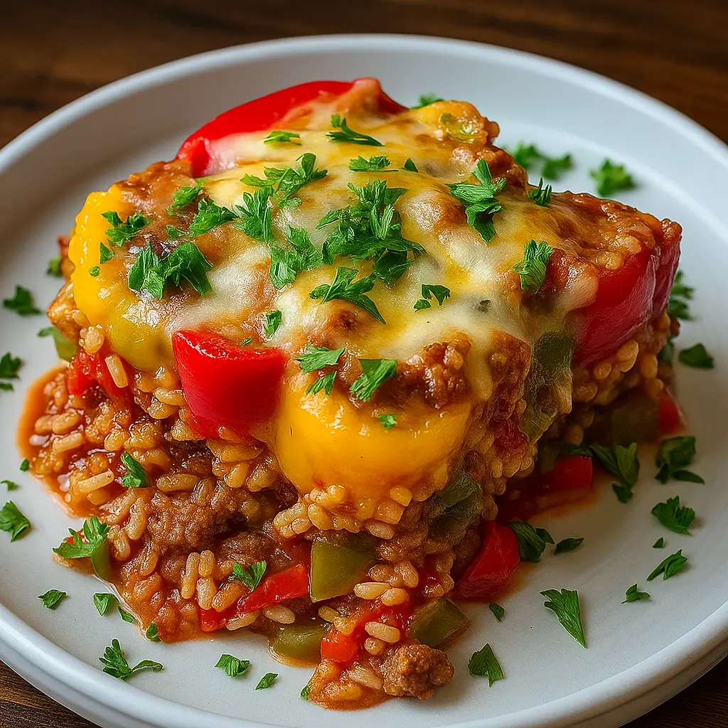 With vibrant bell peppers, seasoned ground beef, and a cheesy topping, this casserole is a comforting, one-dish meal bursting with flavor and effortless to prepare.